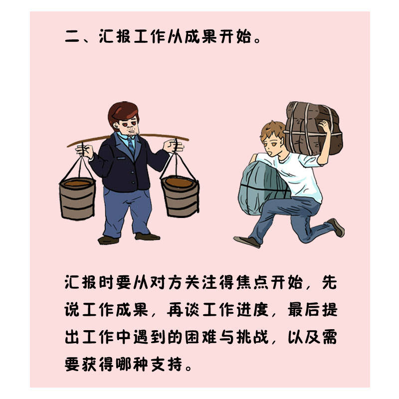 汇报时要从对方关注得焦点最先,,,,先说事情效果,,,,再谈事情进度,,,,最后提出事情中遇到的难题与挑战,,,,以及需要获得哪种支持。。。。。。。